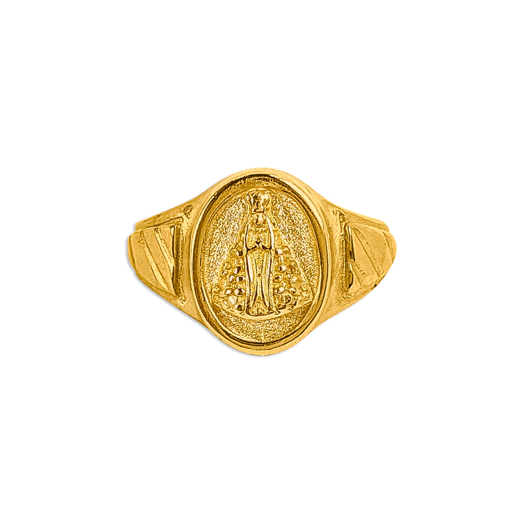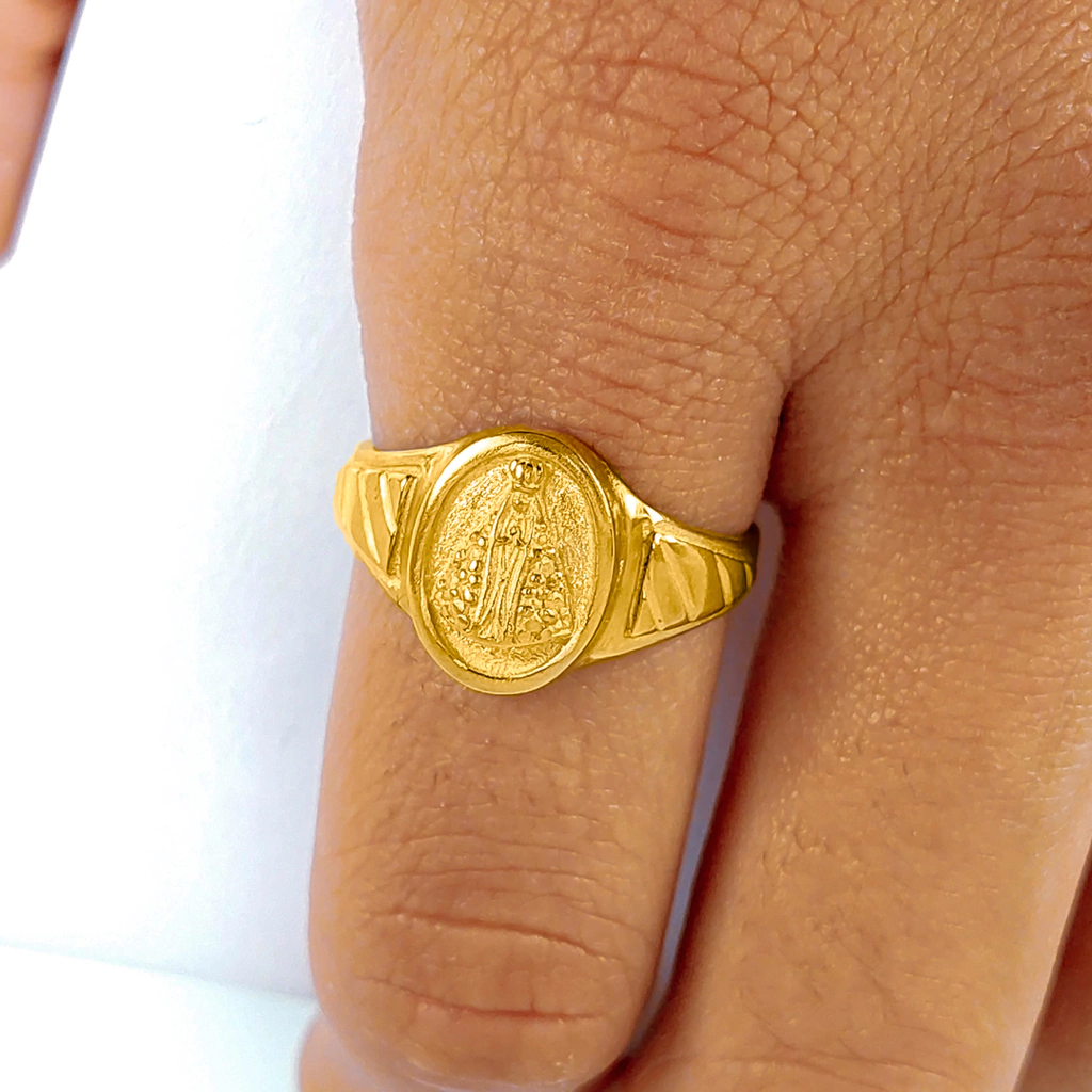 Quer um item exclusivo para revenda que vai conquistar seus clientes? o Anel nossa senhora ressaltado é a escolha perfeita! Com acabamento de joalheria, feita de latão para banho, garantindo qualidade e durabilidade. Leve e estilosa, Não perca a chance de adicionar esse produto incrível ao seu estoque!
