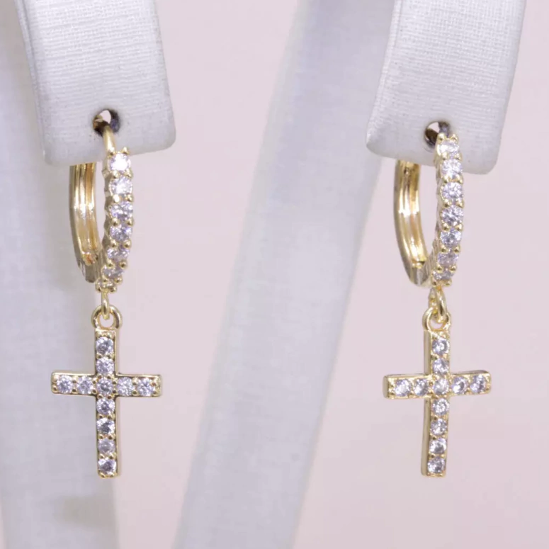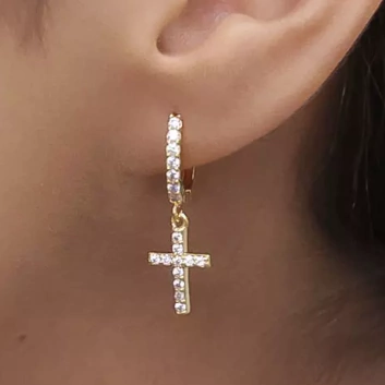 Quer um item exclusivo para revenda que vai conquistar seus clientes? O BRINCO ARGOLA CRAVEJADA COM CRUZ PENDURADA CRAVEJADA é a escolha perfeita! Com acabamento de joalheria, feita de latão para banho, garantindo qualidade e durabilidade. Leve e estilosa, Não perca a chance de adicionar esse produto incrível ao seu estoque!