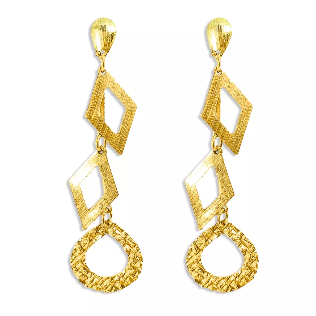 Quer um item exclusivo para revenda que vai conquistar seus clientes? O Brinco Pêndulo Losangos e Gota é a escolha perfeita! Com acabamento de joalheria, feita de latão para banho, garantindo qualidade e durabilidade. Leve e estilosa, Não perca a chance de adicionar esse produto incrível ao seu estoque!