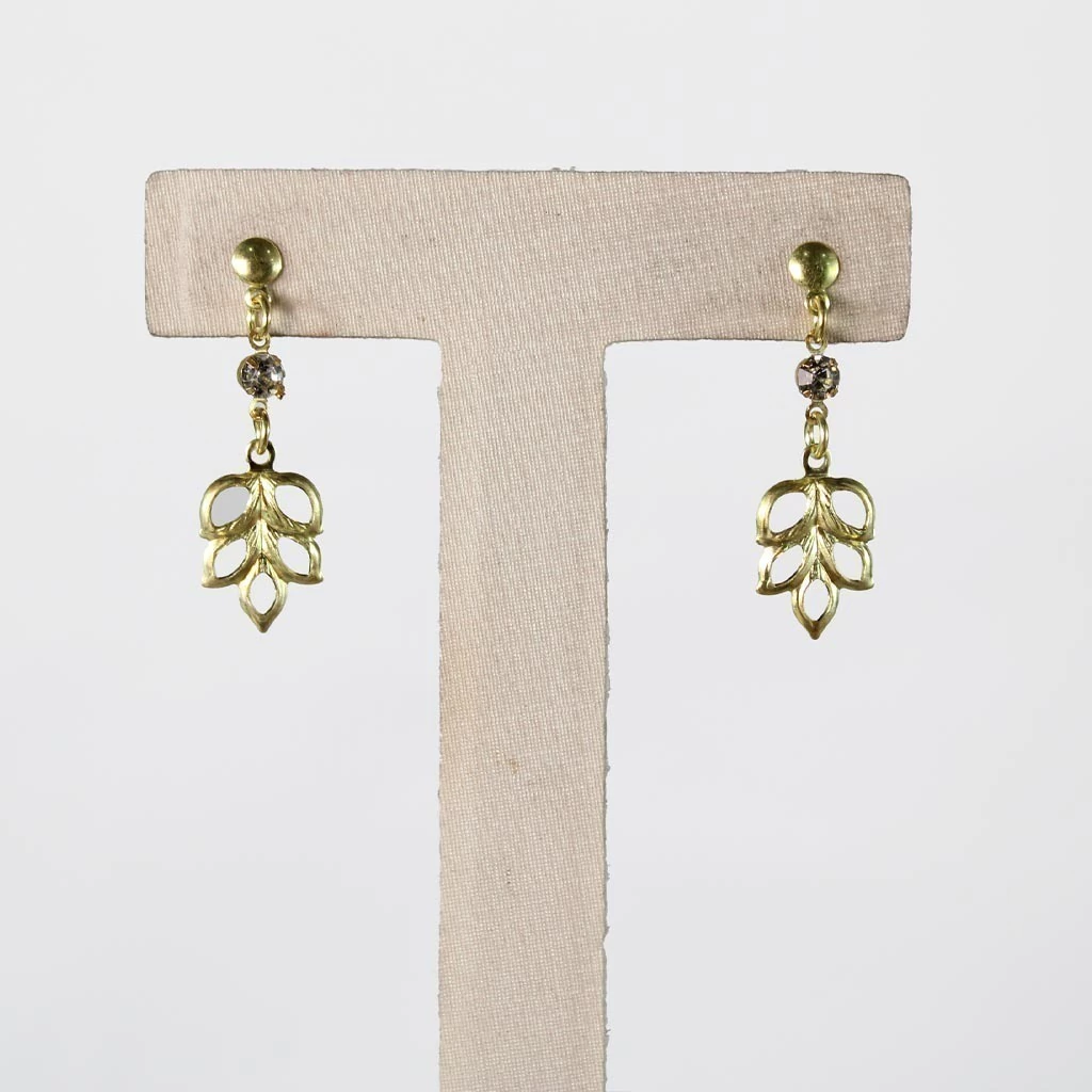 Brinco Ramo de Folhas e Strass - O brinco perfeito para revenda que vai encantar seus clientes! Com um design sofisticado em formato de ramo de folhas, este brinco é adornado com strass que traz um brilho especial, ideal para qualquer ocasião.
