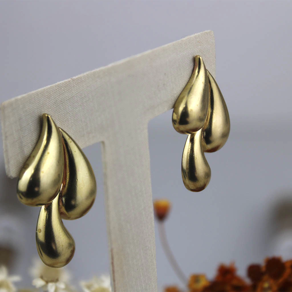 Quer um item exclusivo para revenda que vai conquistar seus clientes? O BRINCO TRÊS GOTAS é a escolha perfeita! Com acabamento de joalheria, feita de latão para banho, garantindo qualidade e durabilidade. Leve e estilosa, Não perca a chance de adicionar esse produto incrível ao seu estoque!