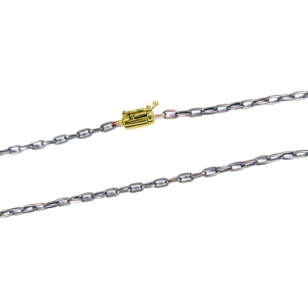 Quer um item exclusivo para revenda que vai conquistar seus clientes? A corrente cadeado oval 2,5mm fecho canhão é a escolha perfeita! Com acabamento de joalheria, feita de latão para banho, garantindo qualidade e durabilidade. Leve e estilosa, Não perca a chance de adicionar esse produto incrível ao seu estoque!