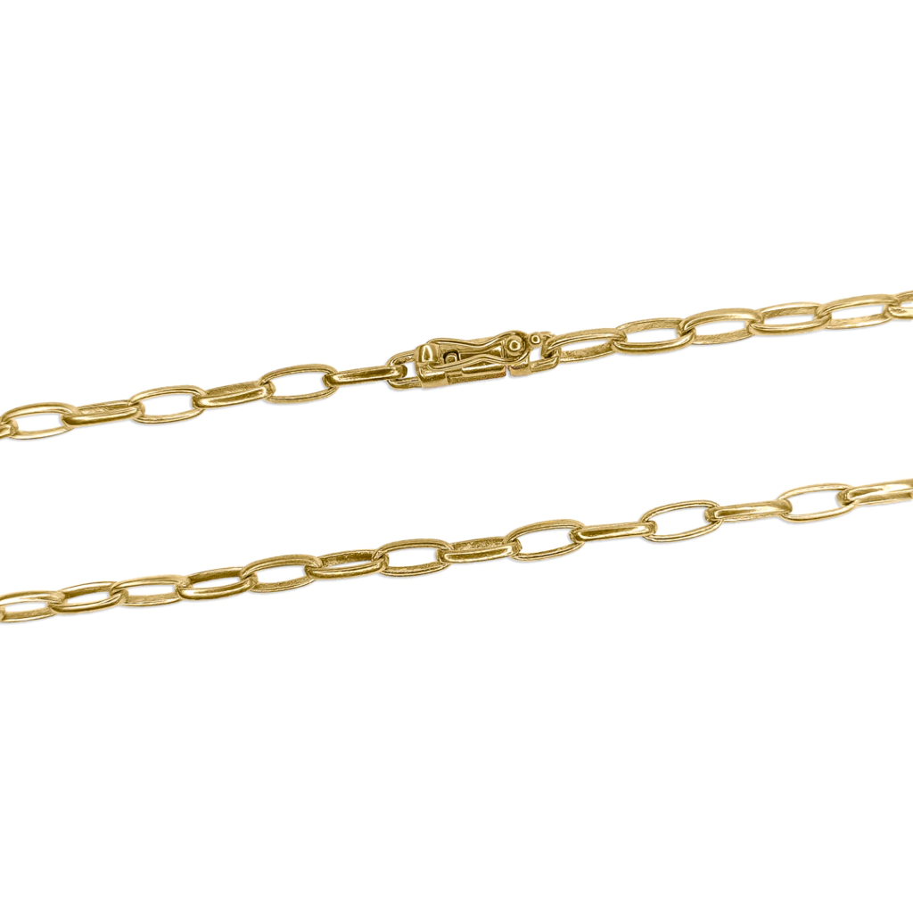 Quer um item exclusivo para revenda que vai conquistar seus clientes? A corrente elos oval 4mm fecho canhão é a escolha perfeita! Com acabamento de joalheria, feita de latão para banho, garantindo qualidade e durabilidade. Leve e estilosa, Não perca a chance de adicionar esse produto incrível ao seu estoque!