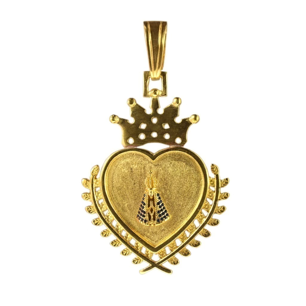 Quer um item exclusivo para revenda que vai conquistar seus clientes? o pingente coração com coroa e santa cravejado é a escolha perfeita! Com acabamento de joalheria, feita de latão para banho, garantindo qualidade e durabilidade. Leve e estilosa, Não perca a chance de adicionar esse produto incrível ao seu estoque!