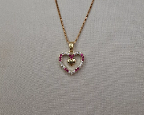 PINGENTE CORAÇÃO ZIRCONIA ROSA E CRISTAL
