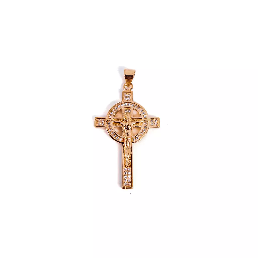 Quer um item exclusivo para revenda que vai conquistar seus clientes? o pingente cruz destaque circulo cravejado é a escolha perfeita! Com acabamento de joalheria, feita de latão para banho, garantindo qualidade e durabilidade. Leve e estilosa, Não perca a chance de adicionar esse produto incrível ao seu estoque!