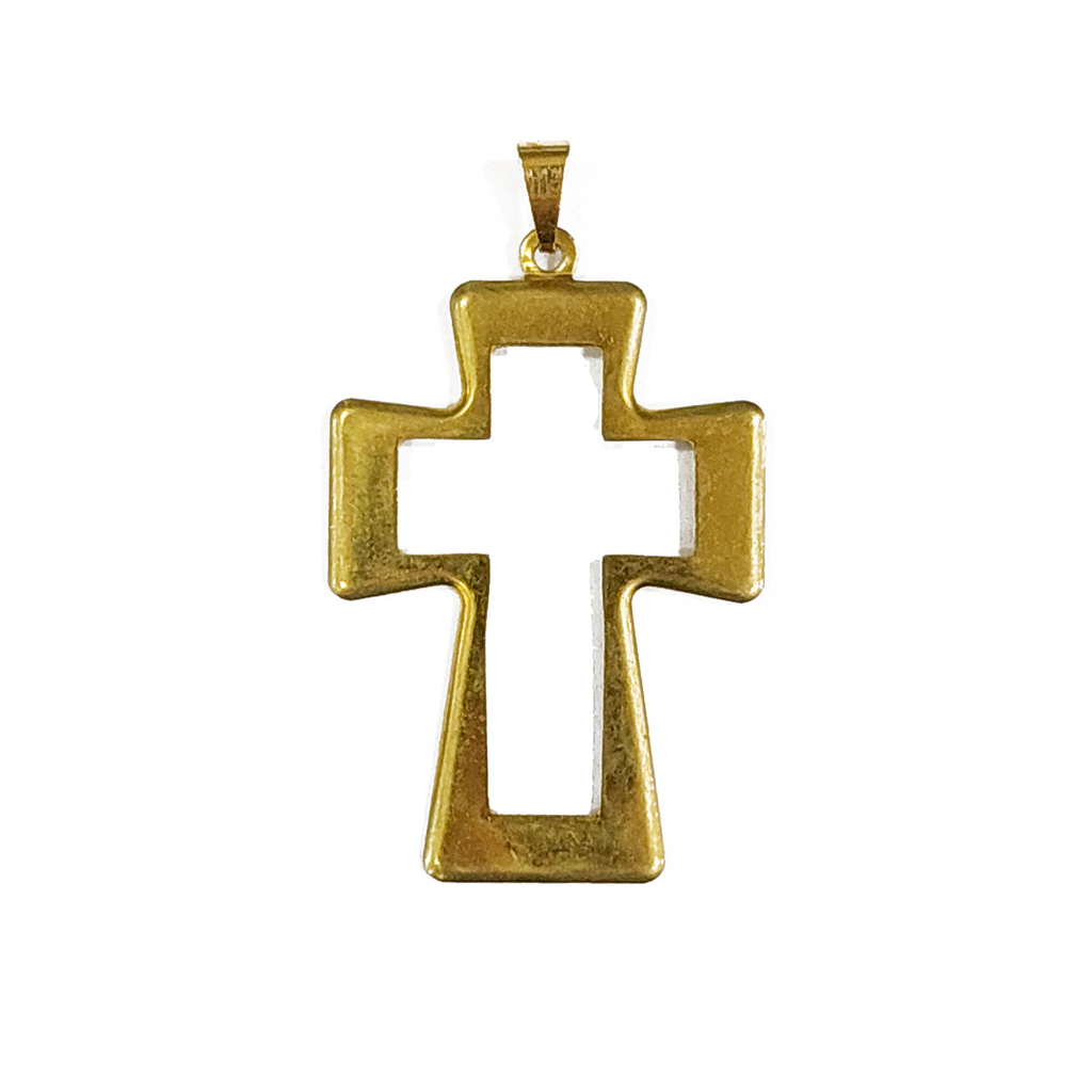 Quer um item exclusivo para revenda que vai conquistar seus clientes? o pingente cruz larga vazada é a escolha perfeita! Com acabamento de joalheria, feita de latão para banho, garantindo qualidade e durabilidade. Leve e estilosa, Não perca a chance de adicionar esse produto incrível ao seu estoque!