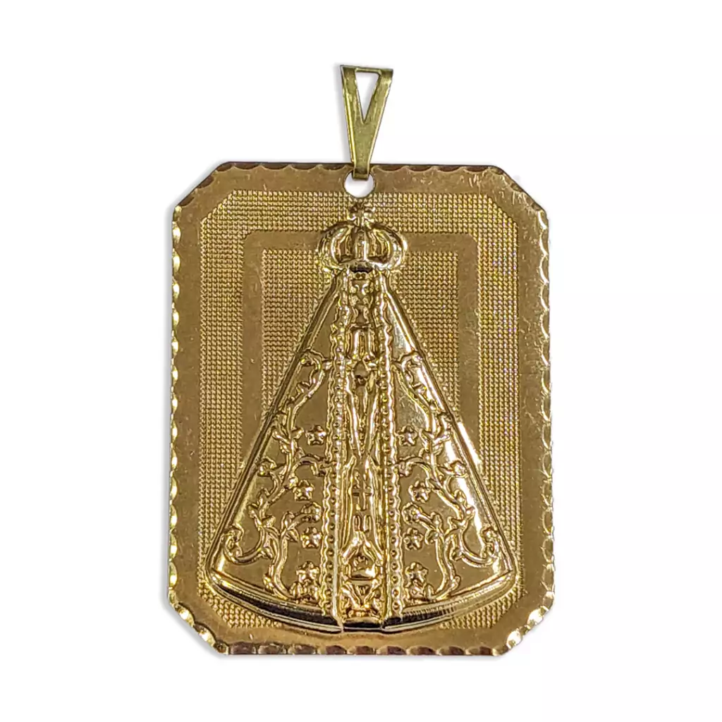 Quer um item exclusivo para revenda que vai conquistar seus clientes? o pingente de placa nossa senhora aparecida é a escolha perfeita! Com acabamento de joalheria, feita de latão para banho, garantindo qualidade e durabilidade. Leve e estilosa, Não perca a chance de adicionar esse produto incrível ao seu estoque!