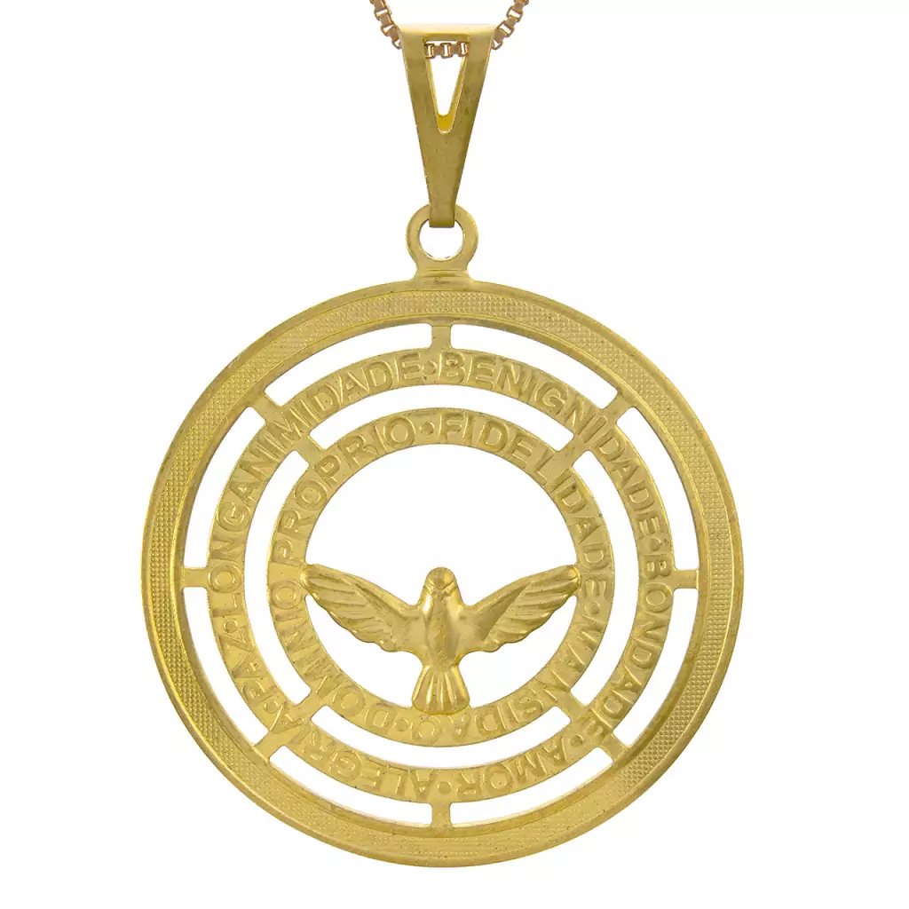 Quer um item exclusivo para revenda que vai conquistar seus clientes? O Pingente Espirito Santo Vazado é a escolha perfeita! Com acabamento de joalheria, feita de latão para banho, garantindo qualidade e durabilidade. Leve e estilosa, Não perca a chance de adicionar esse produto incrível ao seu estoque!