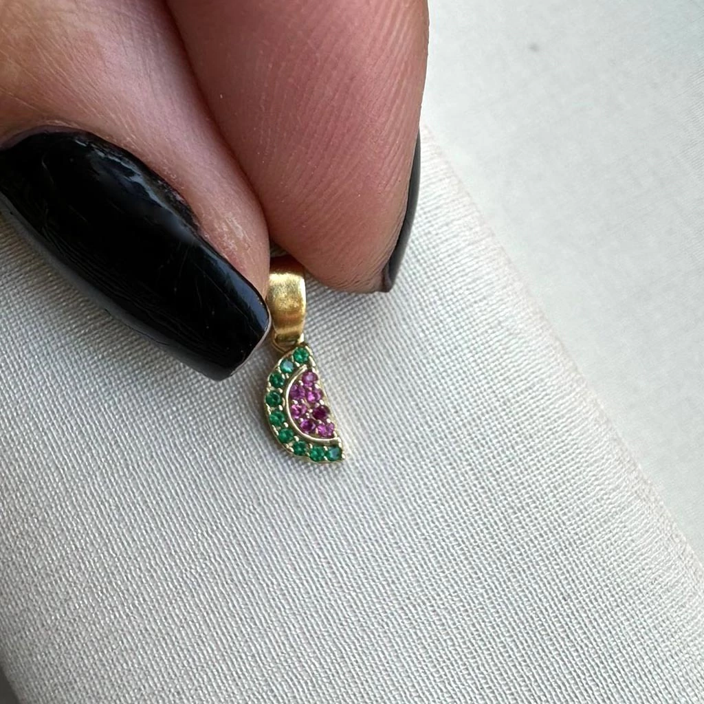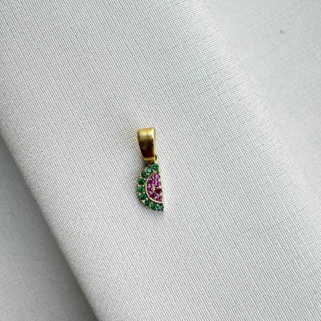 Quer um item exclusivo para revenda que vai conquistar seus clientes? O PINGENTE MELANCIA CRAVEJADO é a escolha perfeita! Com acabamento de joalheria, feita de latão para banho, garantindo qualidade e durabilidade. Leve e estilosa, Não perca a chance de adicionar esse produto incrível ao seu estoque!