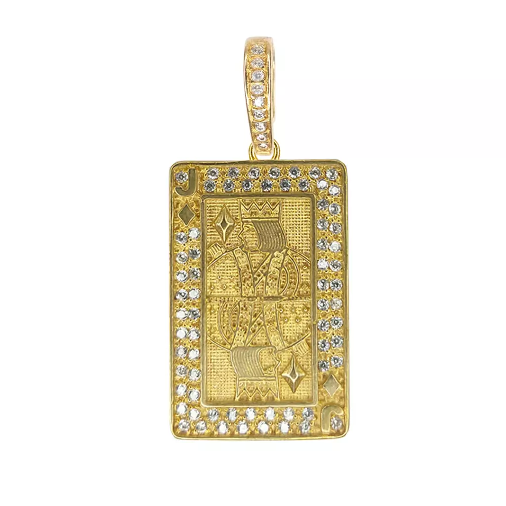 Quer um item exclusivo para revenda que vai conquistar seus clientes? o pingente valete de ouro cravejado é a escolha perfeita! Com acabamento de joalheria, feita de latão para banho, garantindo qualidade e durabilidade. Leve e estilosa, Não perca a chance de adicionar esse produto incrível ao seu estoque!