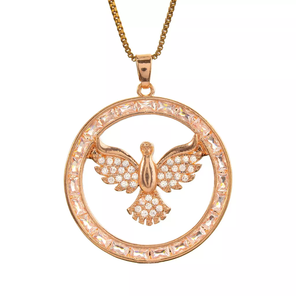 Quer um item exclusivo para revenda que vai conquistar seus clientes? O Pingente Vazado Espirito Santo Circulo Zircônia é a escolha perfeita! Com acabamento de joalheria, feita de latão para banho, garantindo qualidade e durabilidade. Leve e estilosa, Não perca a chance de adicionar esse produto incrível ao seu estoque!