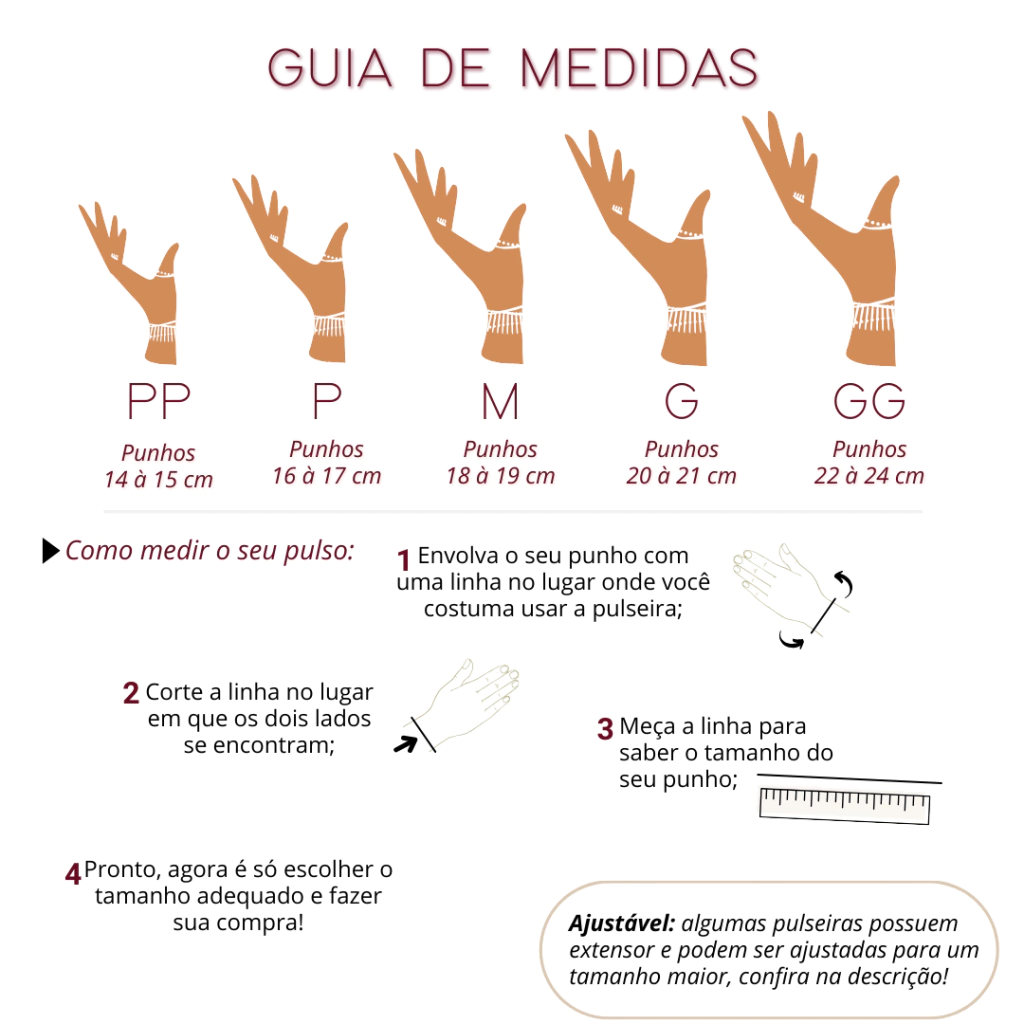 As peças possuem dois tamanhos: 15,16,17,18,19,20,21,22 e 23 centímetros (de ponta a ponta).