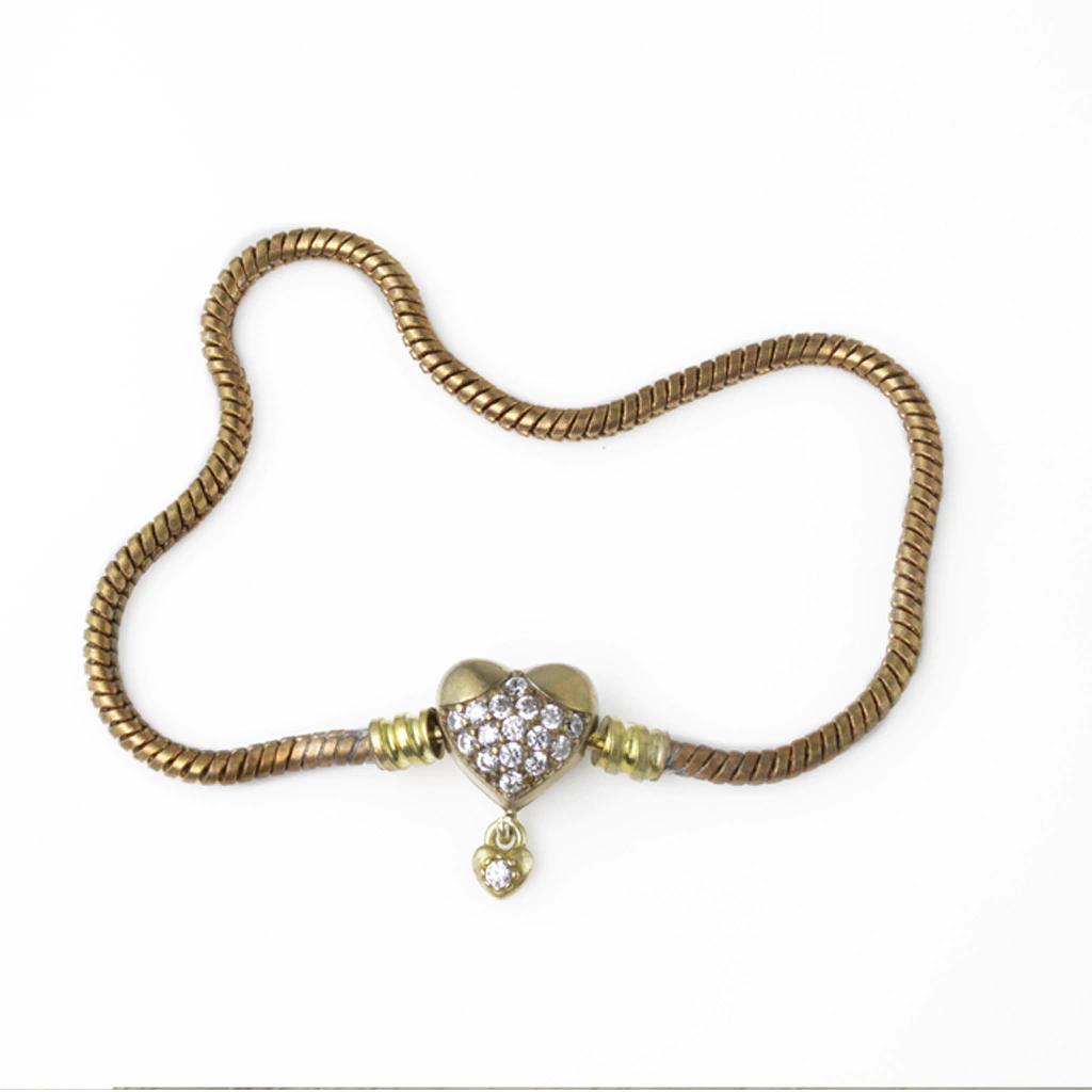 Pulseira para Berloques de Coração Cravejado e Escrita